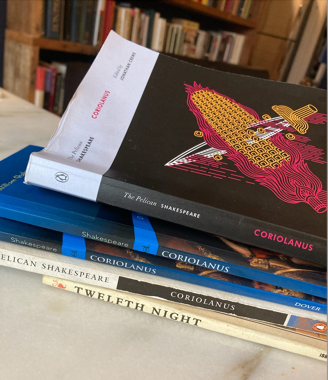 The play was perfect. It’s one of the harder ones to read, but my guests did it in style, and the peculiar tug when you see the play take shape past any particular reading ability is a beautiful one, every time. Volumnia, the mother who eggs her son on to military virtue, only to realize she has precisely failed to teach him the first thing about statesmanship, was perhaps too good a role for carnival-me. It was enjoyed thoroughly.